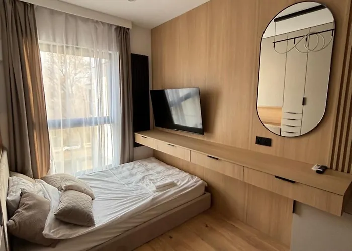 Dieses Apartment liegt im Stadtviertel Praga-Południe von Warschau, in ungefähr 10 Autominuten Entfernung vom Kopernikus-Wissenschaftszentrum. Touristen finden den Altstädtischen Markt ca. 6 km vom Apartment.